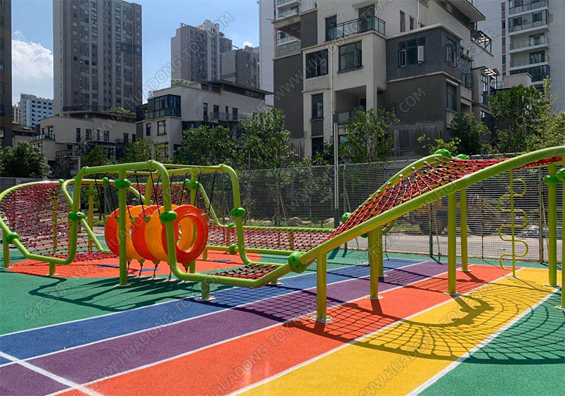 • 湖北省黄石市一品园幼儿园是一家综合性幼儿园,他们在选用游乐设备的时候采用的是加强小朋友的意志力、敢于挑战的勇气的万能健身设备和爬网,整套设备的完美设计与组合使得整个项目充满了活力。
