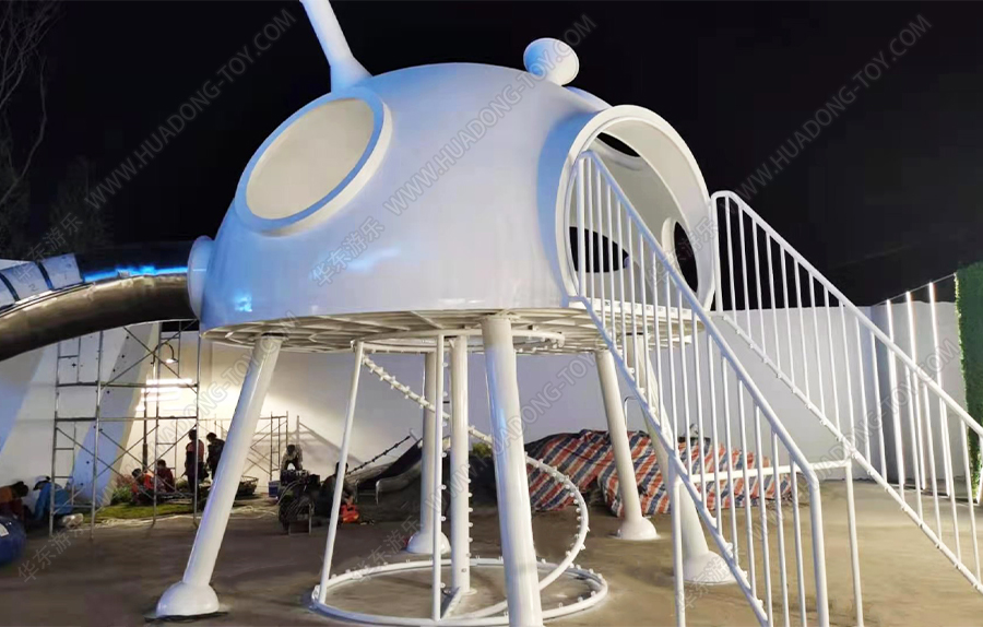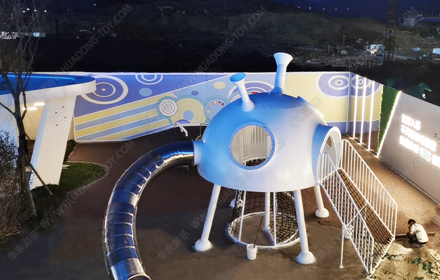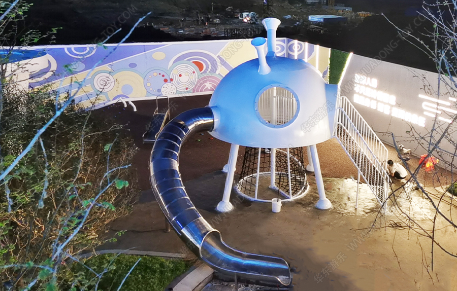 隆回县碧桂园天玺湾非标定制案例采用的是一个由leyu.com乐鱼游乐自主研发和设计的一款造型独特,外观新颖的具有不锈钢滑桶、爬网、钻洞等功能的游乐设备,并在该游乐场设置了摇摇乐、秋千等游乐设备,为生活在该区域的小朋友提供了一个休闲,娱乐 ,健身的场所。
