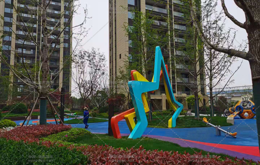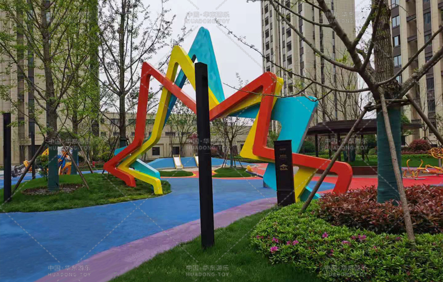 • 祥生云山新语项目采用的是以星星形状的门型为原型而设计的游乐场地,该场地放置了跷跷板、微地形,攀爬墙等游乐设备。