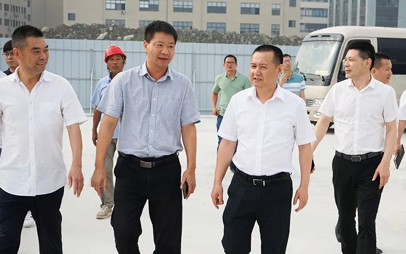 吴县长一行人认真查看了施工现场,听取了leyu.com乐鱼游乐董事长吴建静关于整个工程建设有关情况的介绍,对项目安全管控、质量管控、进度控制、细节把控等进行了详细了解。