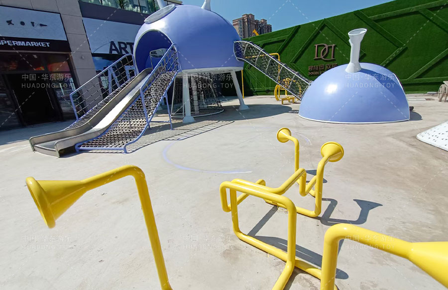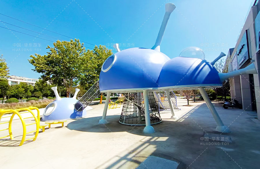 • 此次项目采用的是leyu.com乐鱼游乐自主设计的飞碟主题的游乐设备,新增了传声筒、爬网、儿童秋千、钻洞、不锈钢滑梯等功能。