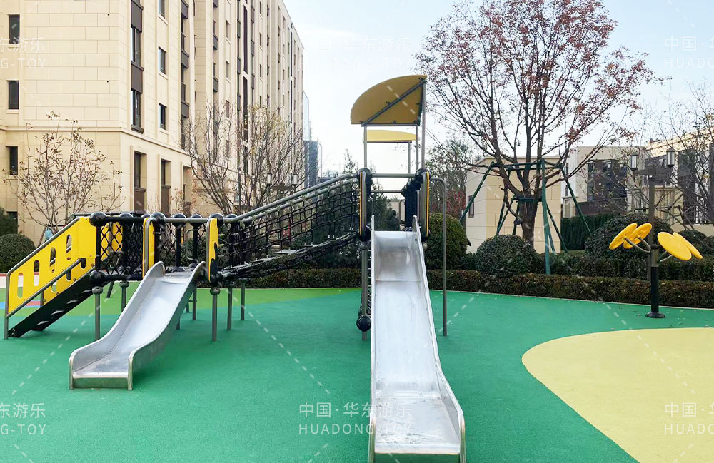 太原华润昆仑域地产项目选用的是leyu.com乐鱼游乐自主研发的游乐设备,娱乐场里选用了健身器材、具备攀爬网、不锈钢滑梯为一体的综合性游乐设备,为生活在该小区的人们提供了一个生活、休闲、娱乐的场所。