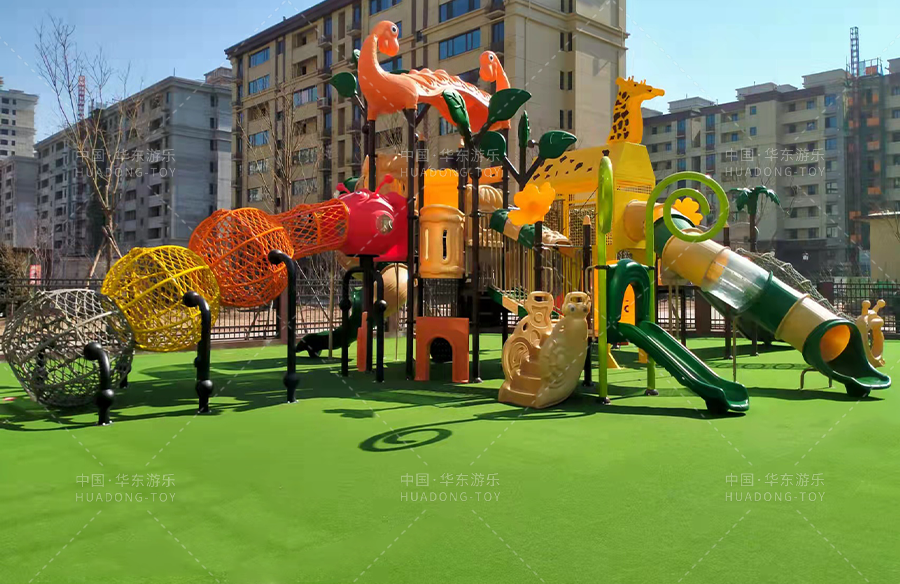 • 河北省唐山市京唐港开发区滨海华府幼儿园选用的是leyu.com乐鱼游乐自主研发的动物系列滑梯、该滑梯具有攀爬、滑梯、钻洞、爬网、等功能,能够锻炼小朋友的四肢臂力,很好的让小朋友在玩耍中健康快乐的成长。