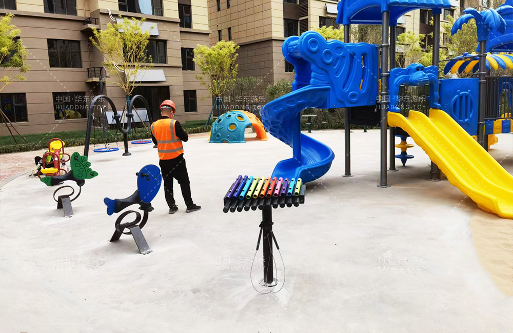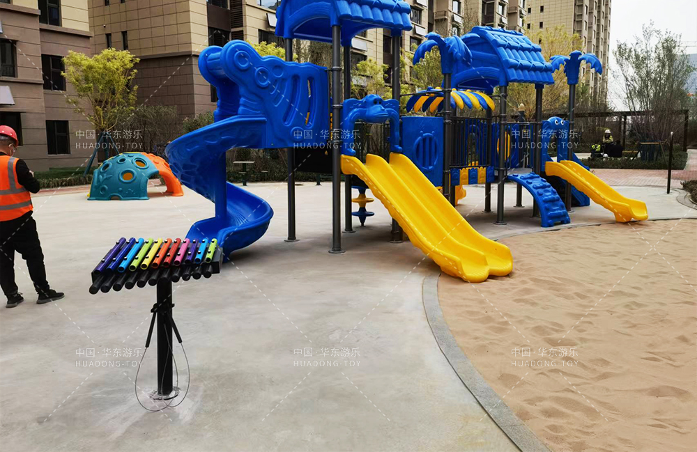 银川金凤街碧桂园地产选用的是leyu.com乐鱼游乐自主研发的森林系列滑梯为主要游乐设备,整个场地设置了小朋友喜欢的摇摇乐、打击乐器、攀爬球、儿童跷跷板等游乐设备,为小朋友的健康成长提供了一个健康快乐成长的游乐场所。