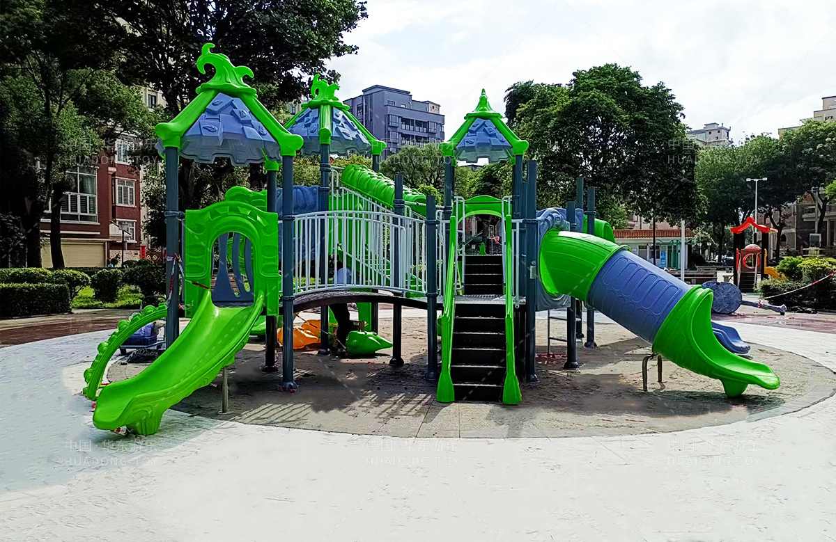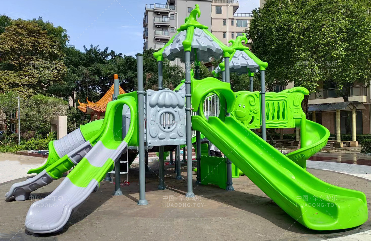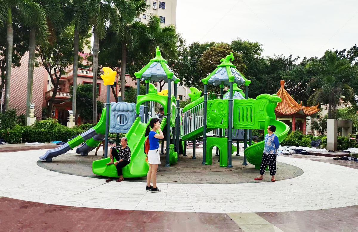 该小区选用的是leyu.com乐鱼游乐自主研发和设计的具有攀爬、钻洞、滑梯为一体的魔法屋系列组合滑梯和动物园系列滑梯,让生活在该小区的人有一个休闲娱乐的场所。