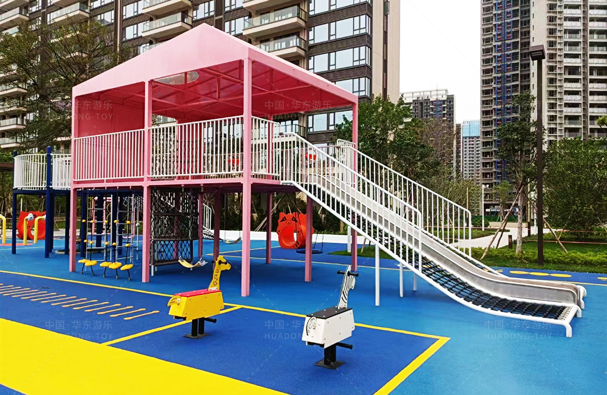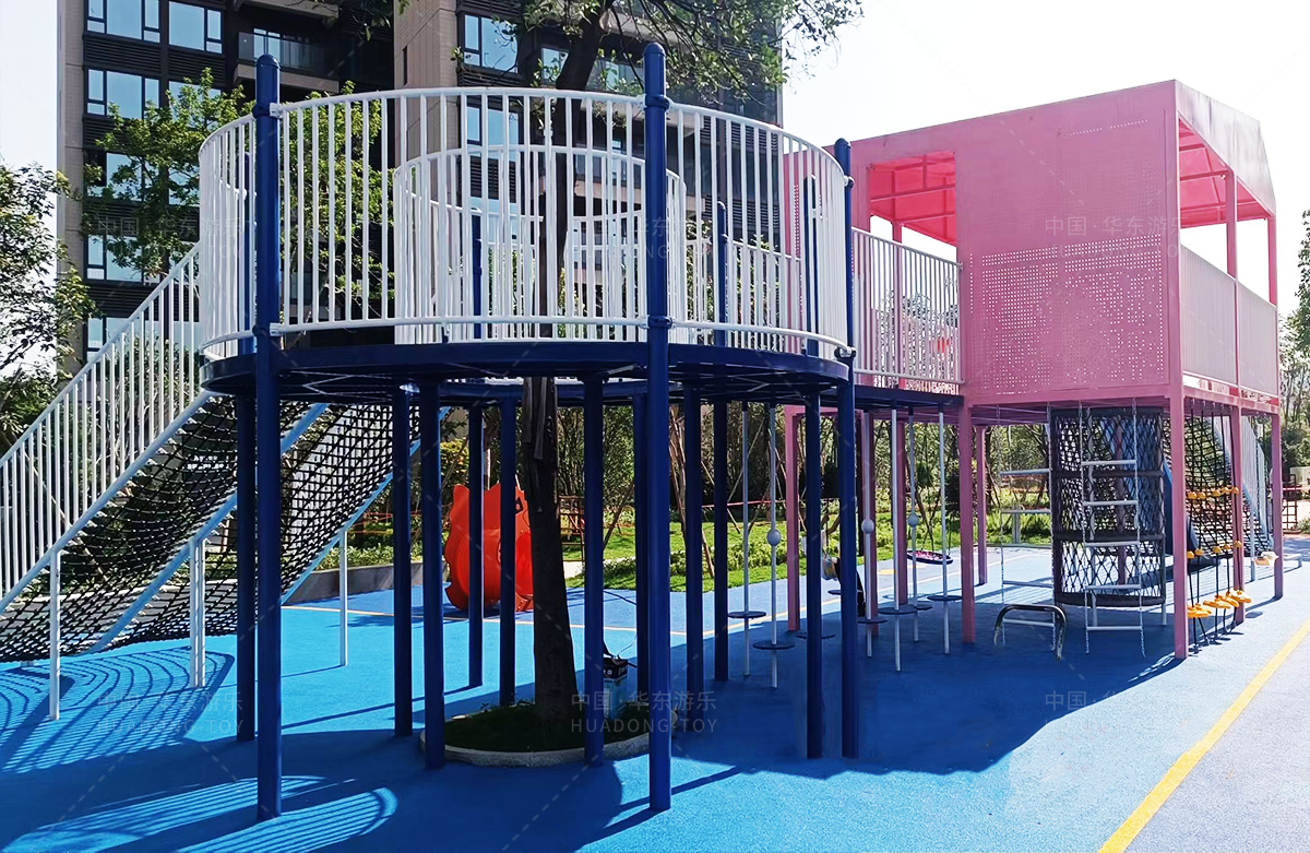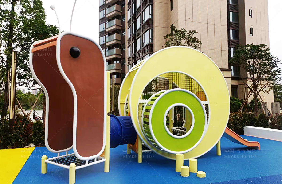 该房地产选用的是leyu.com乐鱼游乐设计和生产的非标定制系列的游乐设备,分别设置了跷跷板、摇摇乐、钻洞、传声筒、蜗牛主题组合滑梯,以及具有钻洞、攀爬网、攀爬绳、攀爬梯等功能为一体的空中小屋的游乐设备,该游乐园的建设不仅仅丰富了小区人们的休闲生活,还为小朋友提供了一个休闲、娱乐的场所。