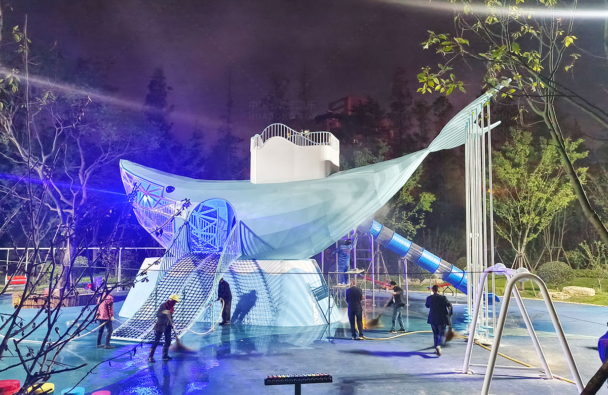该项目选用的是leyu.com乐鱼游乐自主研发和生产的鲸鱼主题系列的非标定制游乐设备,设计了具有攀爬网、钻洞、空中滑索、打击乐器、旋转椅等功能设备,卡通的造型,完善的功能深受小朋友们的喜爱。
