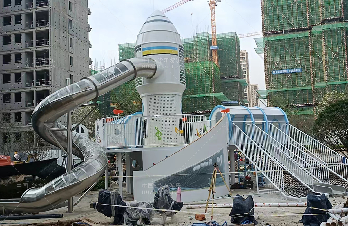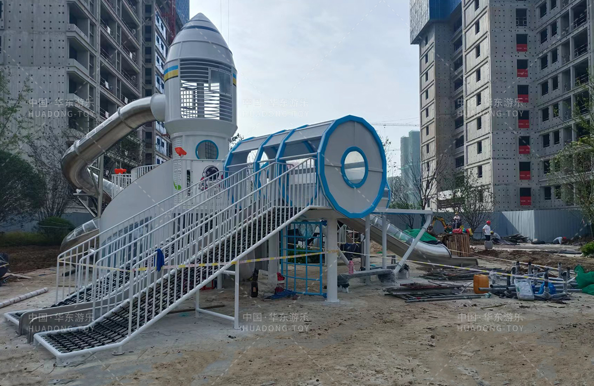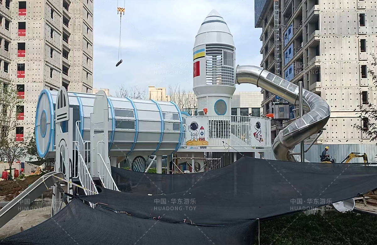 • 安徽省亳州市涡阳县荣徽上河郡选用的是leyu.com乐鱼游乐自主研发和生产的以航天飞机为主题的大型非标定制的游乐设备,是一款具备了攀爬网、攀爬梯、旋转滑筒、儿童摇摇乐为一体的综合性儿童游乐场。