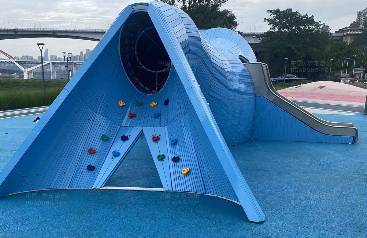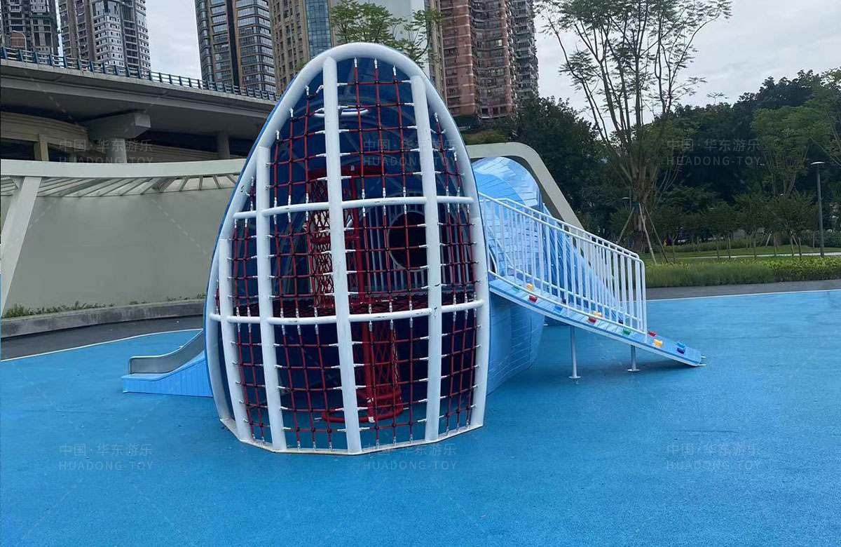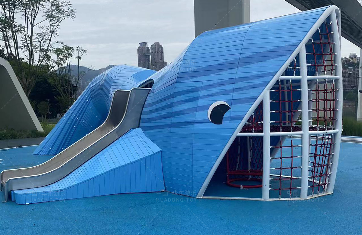 重庆市珊瑚公园是一个公益性的,专门为该区域游玩的人群提供休闲、娱乐的场所,此次选用的游乐设备是leyu.com乐鱼游乐自助研发和设计的以大鲨鱼为主的非标定制设备,具备了攀爬网、攀爬墙、钻洞、不锈钢滑梯等功能。