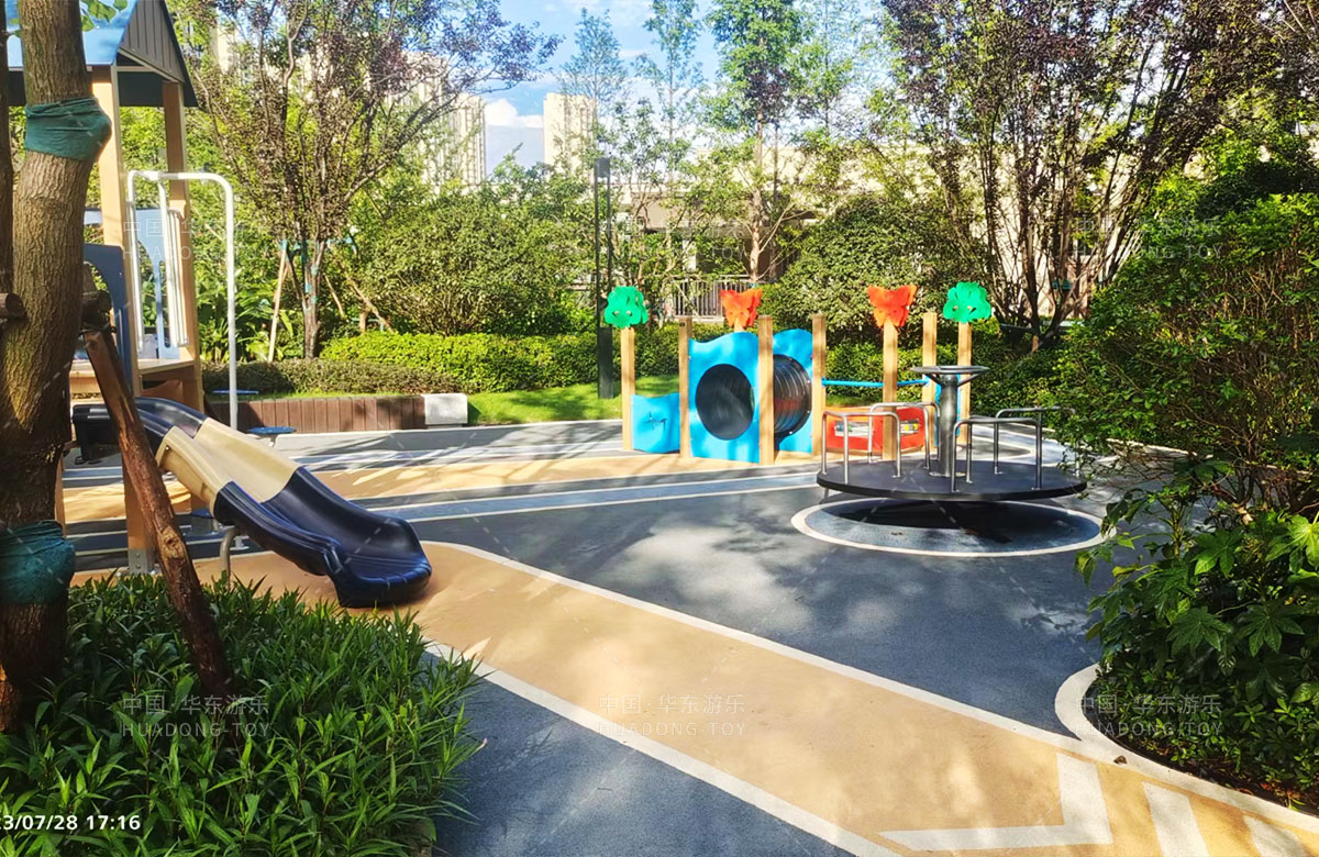 • 该项目是一个综合性的儿童游乐场地,为了更好的为小朋友提供全方便的发展该活动区分别设置组合滑梯、万能拓展、儿童摇摇乐、旋转椅、不锈钢滑梯、钻洞、沙池等娱乐功能。