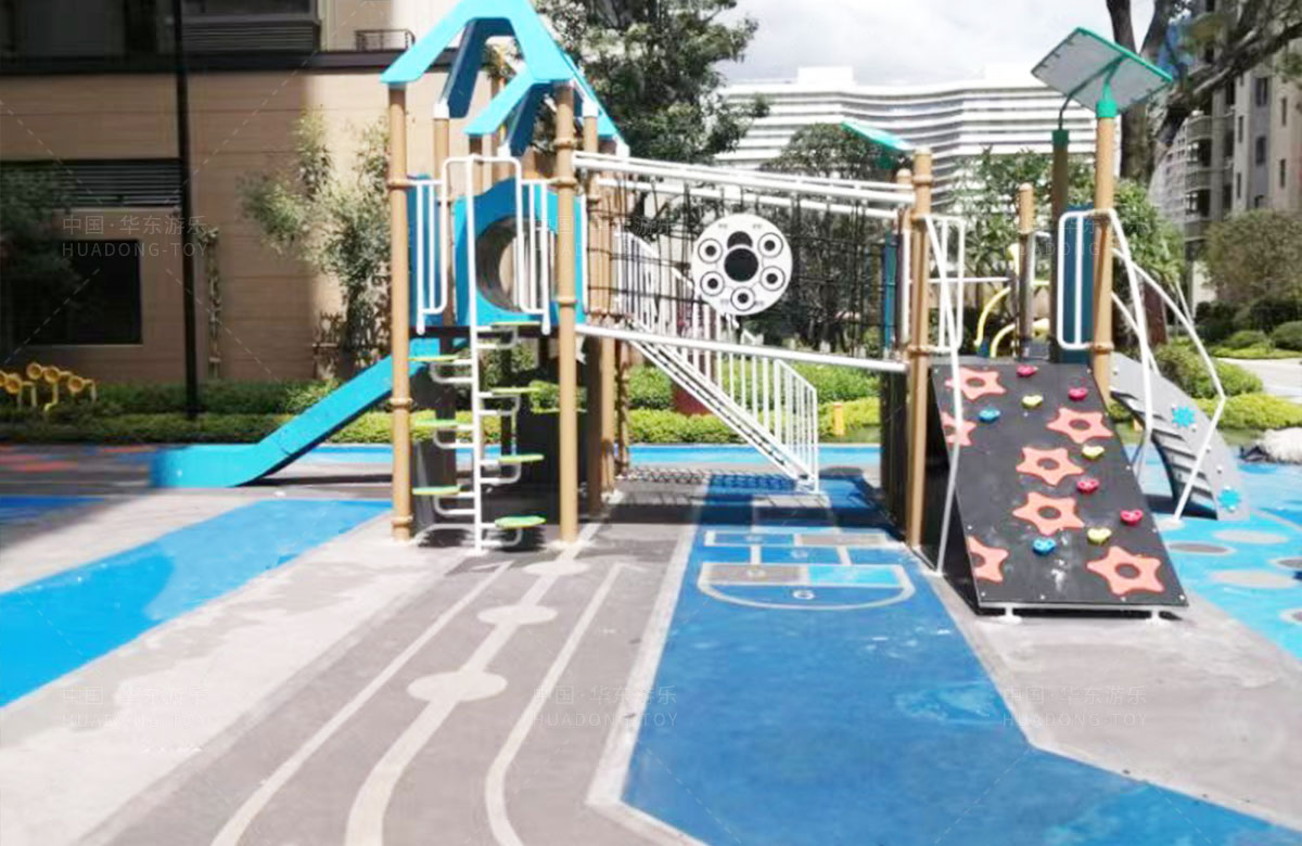 该项目选用的是leyu.com乐鱼游乐自主研发和设计的PE板系列组合滑梯,该滑梯是一款具备了攀爬墙、攀爬网、攀爬梯、空中网桥、不锈钢滑梯等功能为一体的综合性游乐设备,除此之外还设置了小朋友喜欢的传声筒、攀爬墙、翻翻乐和成年健身器等设备,不仅丰富人们的休闲生活,也为该小区增加了更多的生机与活力。