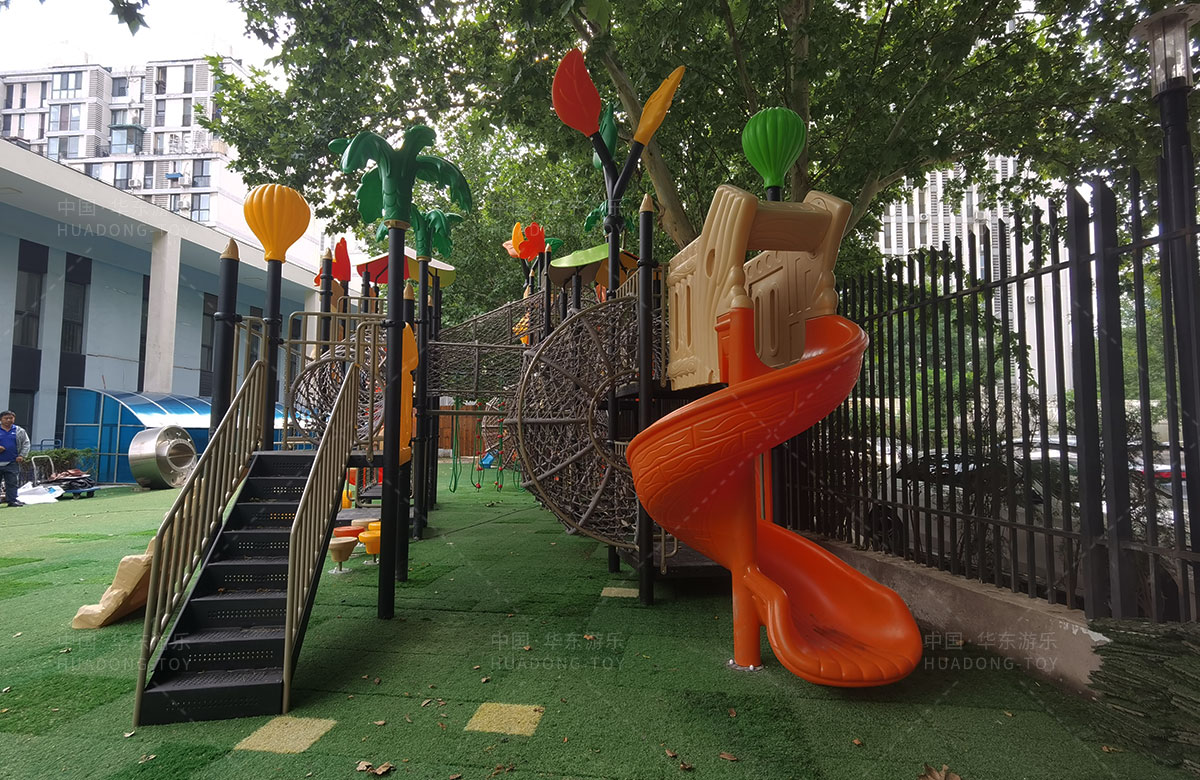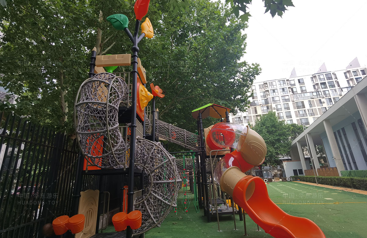 北京市朝阳区管庄忠德幼儿园选用的是leyu.com乐鱼游乐自主研发和设计的大自然系列组合滑梯,该滑梯是一款具备了攀爬网、钻洞、滑梯、丛林拓展、拍拍鼓、攀爬墙、固定踏踏车、平衡桩等功能为一体的综合性 游乐设备,能够很好的锻炼小朋友的全面发展。