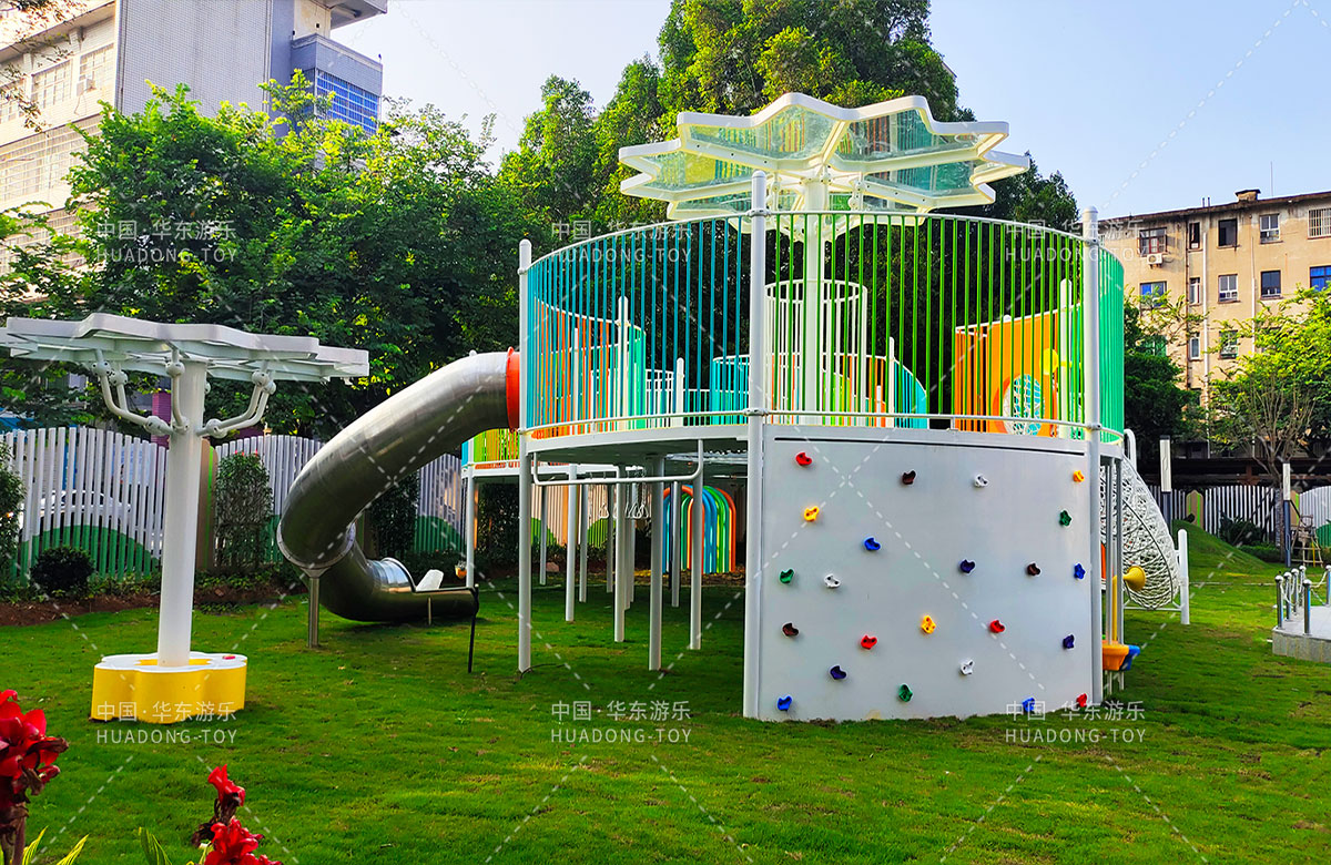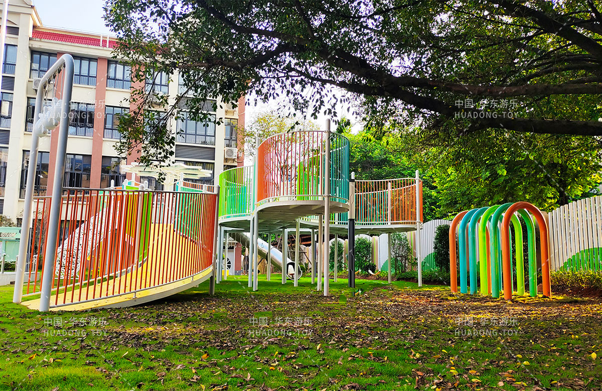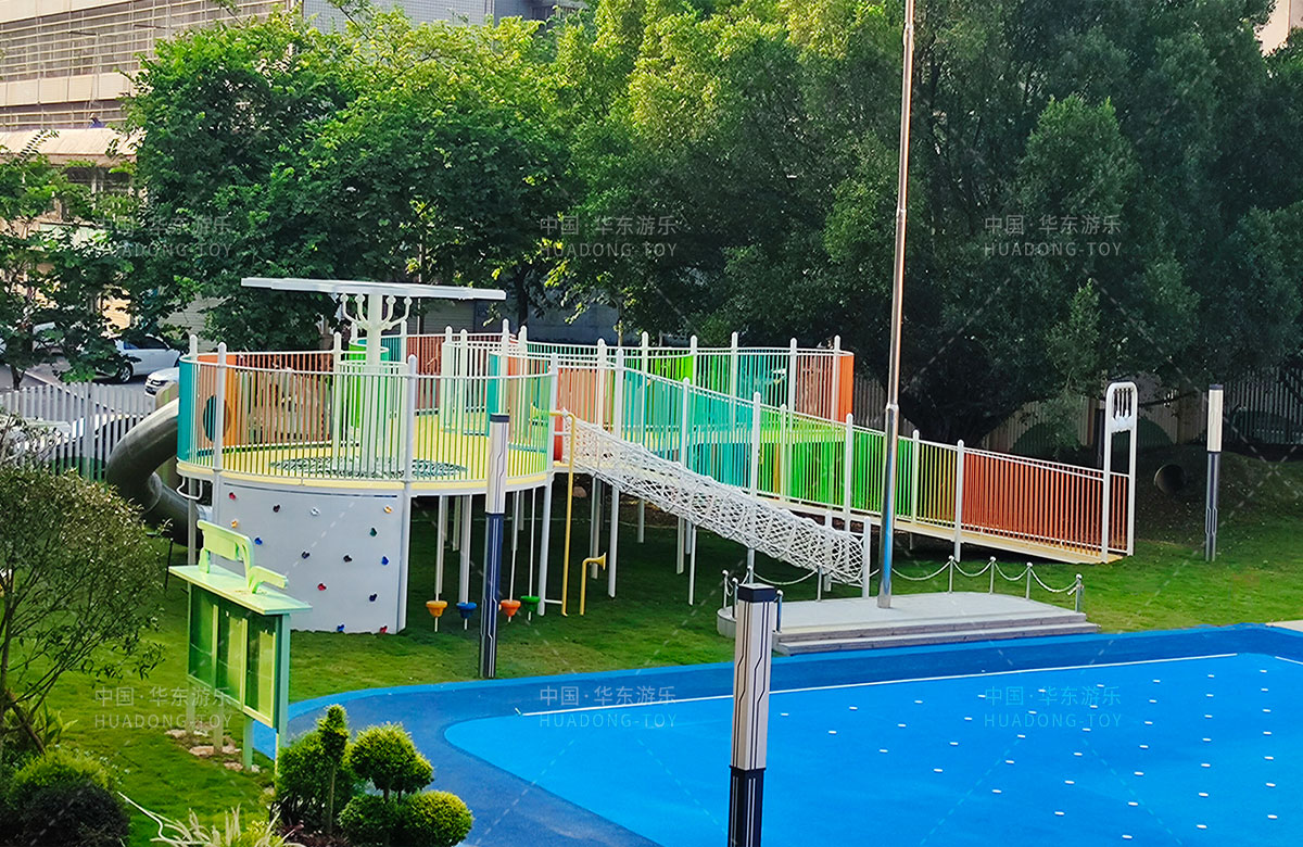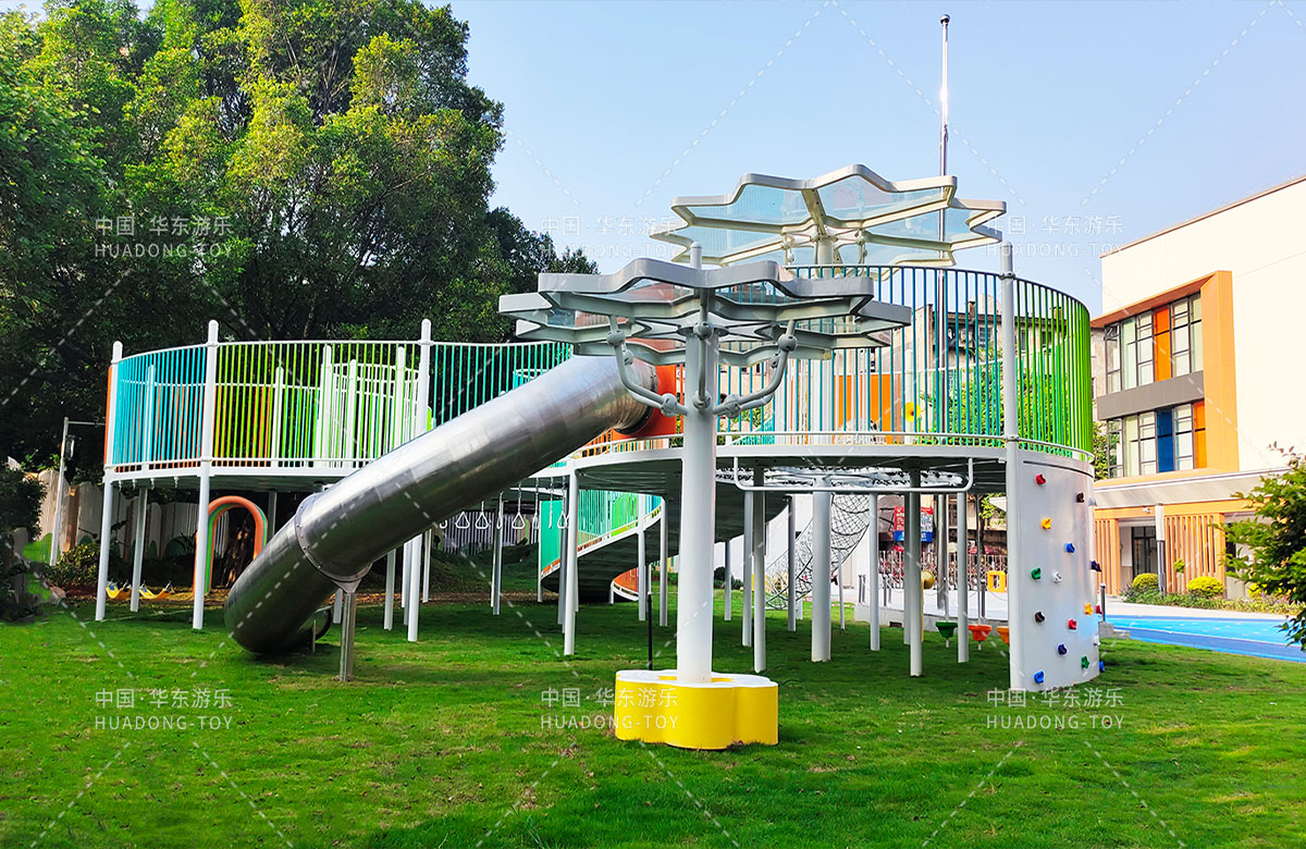 三明市实验幼儿园 选用的是leyu.com乐鱼游乐自主研发和设计的非标定制系列的组合游乐设备,是一款具备了攀爬网、空中网桥、攀爬墙、儿童秋千、大型滑筒、平衡吊环、彩虹桥等功能,除此之外还设置了树形休闲厅、木制小桥等游乐设备,让孩子们有一个健康的成长环境,也为老师的教学提供了保障。