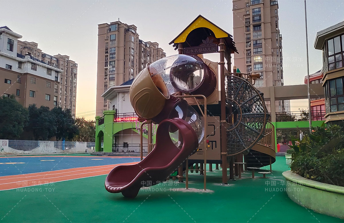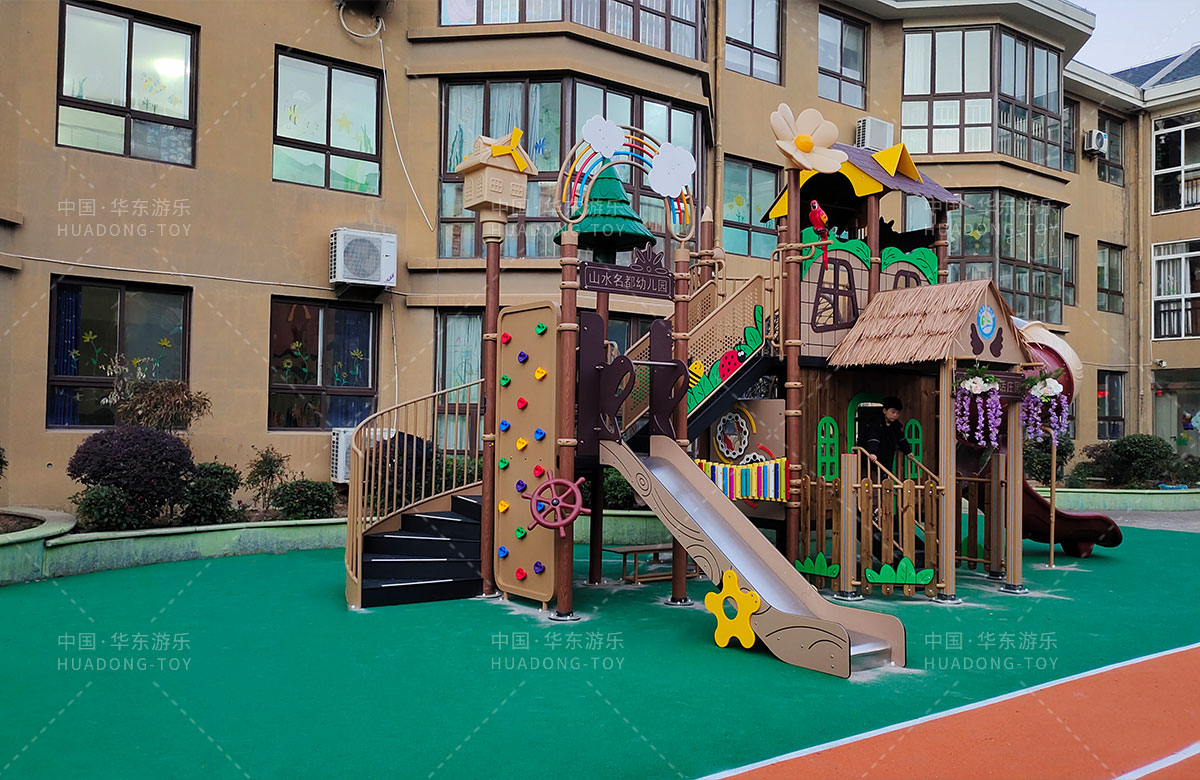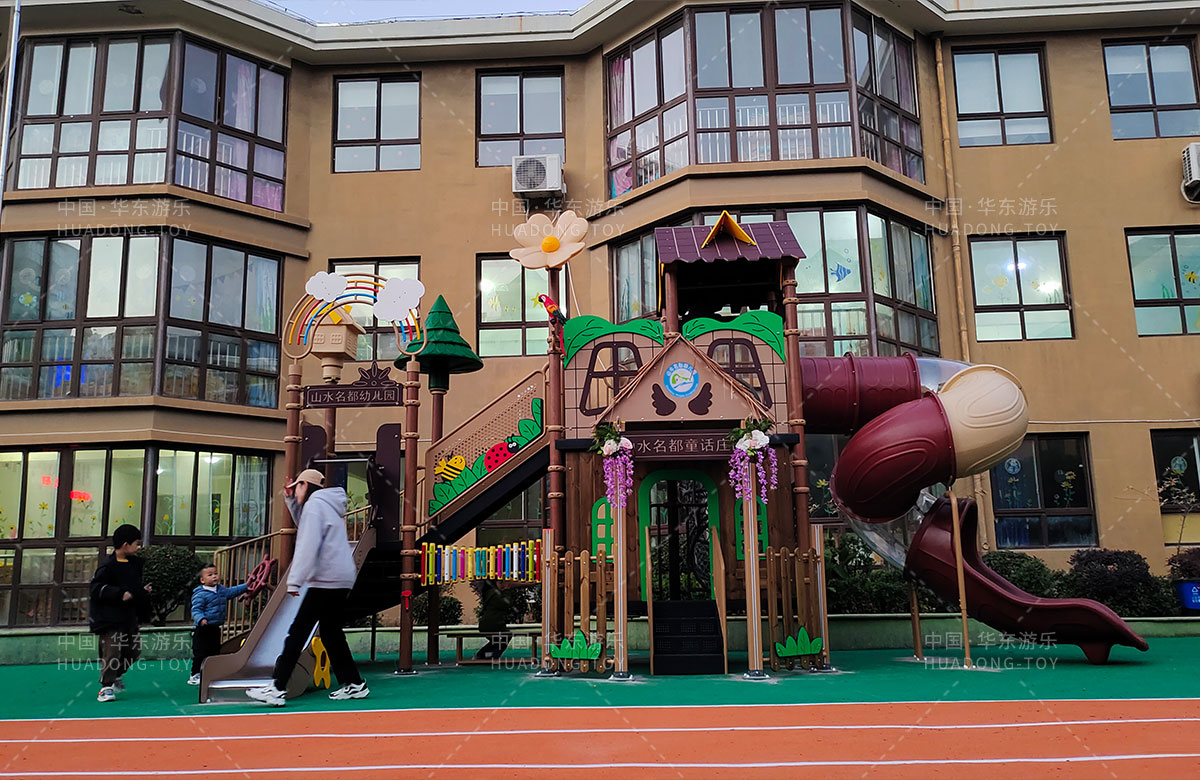 • 江苏省淮安市山水名都幼儿园是一家专业的学期教育培训机构,此次选用的是leyu.com乐鱼游乐自主研发和设计的通话庄园系列组合滑梯,该设备具备了攀爬网、攀爬墙、打击乐器、旋转滑梯等功能,是一款功能齐全、主题鲜明、颜色艳丽、品质优越的综合性游乐设备,非常适合幼儿园。