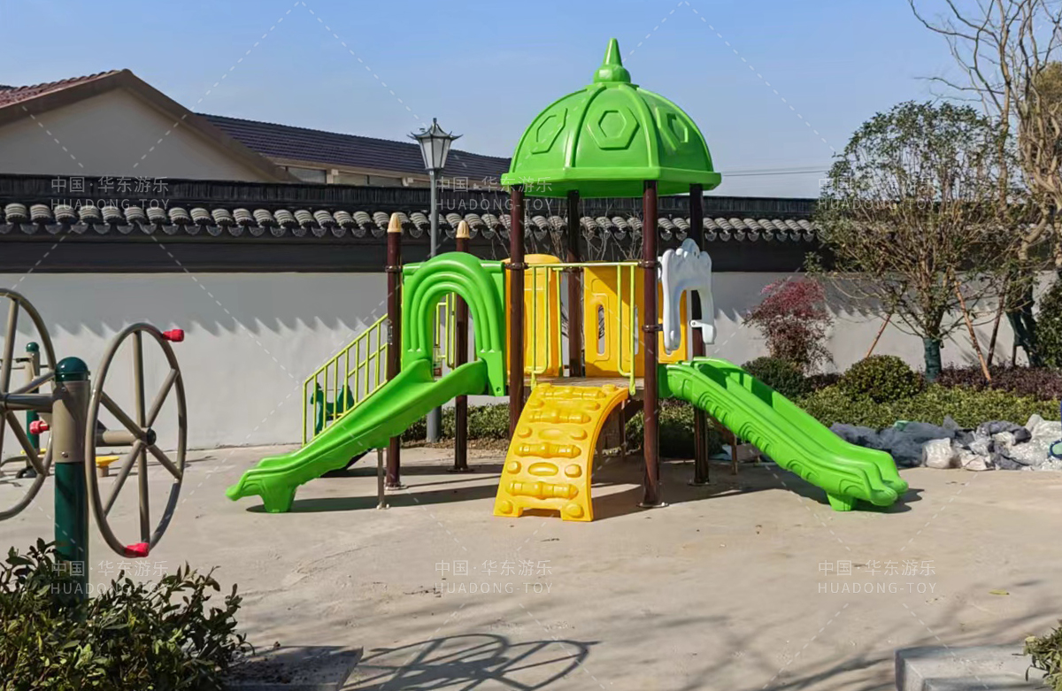 • 常州市桃花院子选用的是leyu.com乐鱼游乐自主研发和设计的别墅屋系列组合滑梯,该滑梯采用滚塑一体成型,具有颜色艳丽、使用寿命长等特点,同时为了更好的为生活在该小区的人们服务,还设置了各种类型的健身器,以及小朋友喜欢的儿童跷跷板、儿童秋千和传声筒等游乐设备,不仅丰富了小区的生活,也为小朋友的玩耍提供了一个很好的场所。