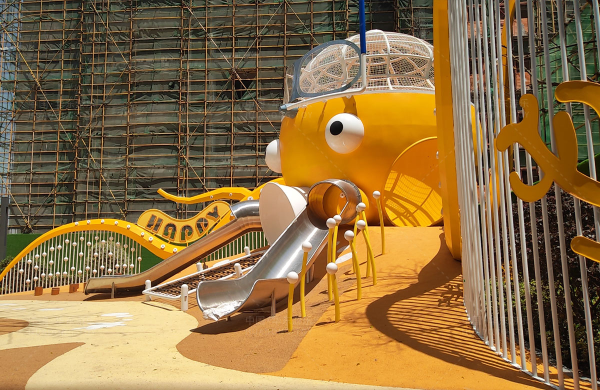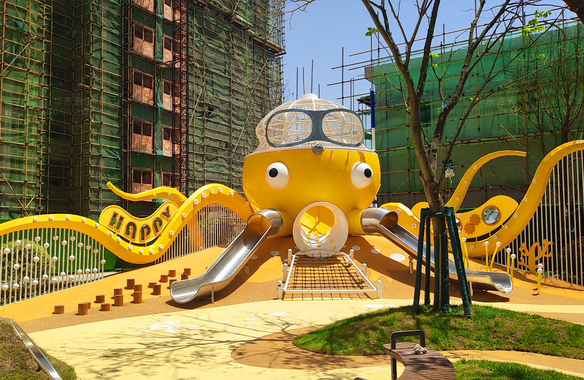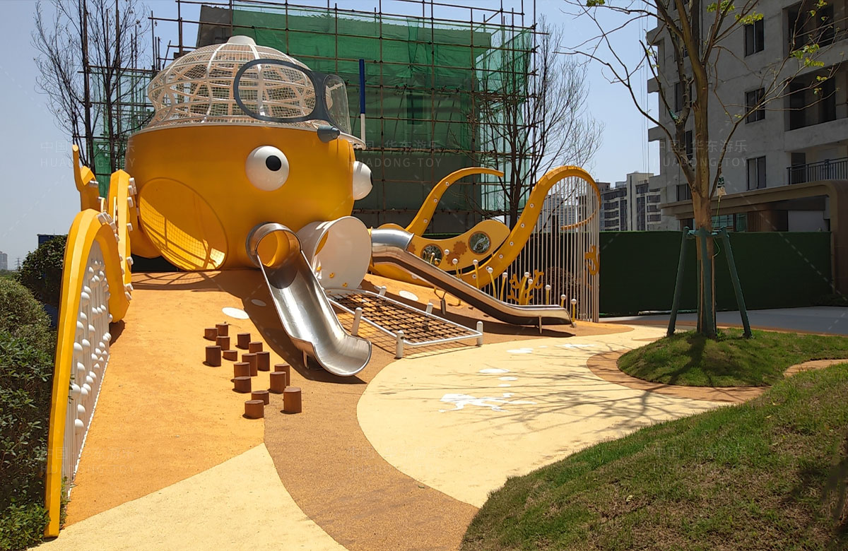 襄阳金辉优步学府此次选用的是leyu.com乐鱼游乐自主研发和设计的以章鱼为主题的的游乐设备,该设备以生动的形象向小朋友展示了游乐设备的多姿多彩,结合各种的攀爬网、攀爬梯、不锈钢滑梯、攀爬杆、不锈钢钻洞、组合秋千,不仅仅丰富了小区的生活,同时也为生活在当地的人群提供了一个休闲、娱乐、遛娃的场所。
