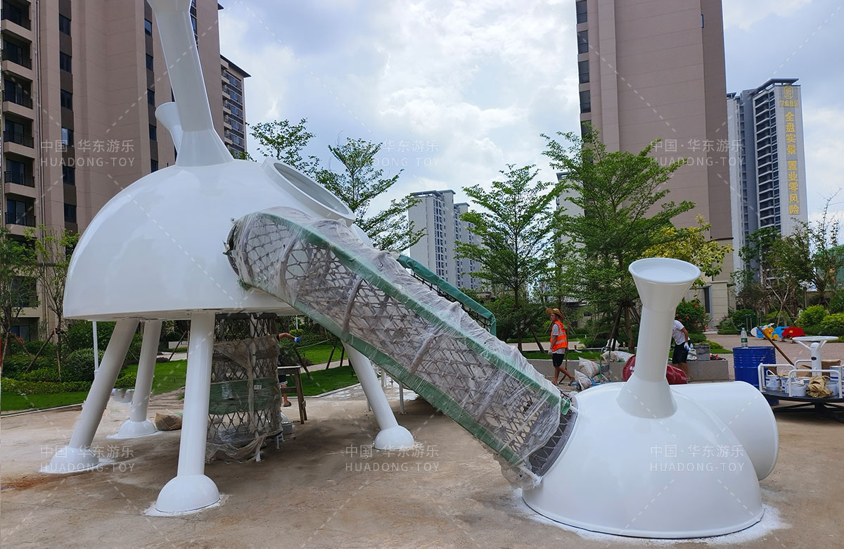 • 该项目是一个地产类型的公园配套设施,整个游乐园采用的是飞碟主题的儿童游乐园,为了更好的让孩子们有一个愉快的童年,该游乐园分别设置了非标定制的组合游乐设备、儿童跷跷板、儿童秋千、儿童摇摇乐等游乐设备,该乐园的建设不仅为小区带来了更多的生机与活力,也为孩子们的健康成长提供了一个很好的场所。