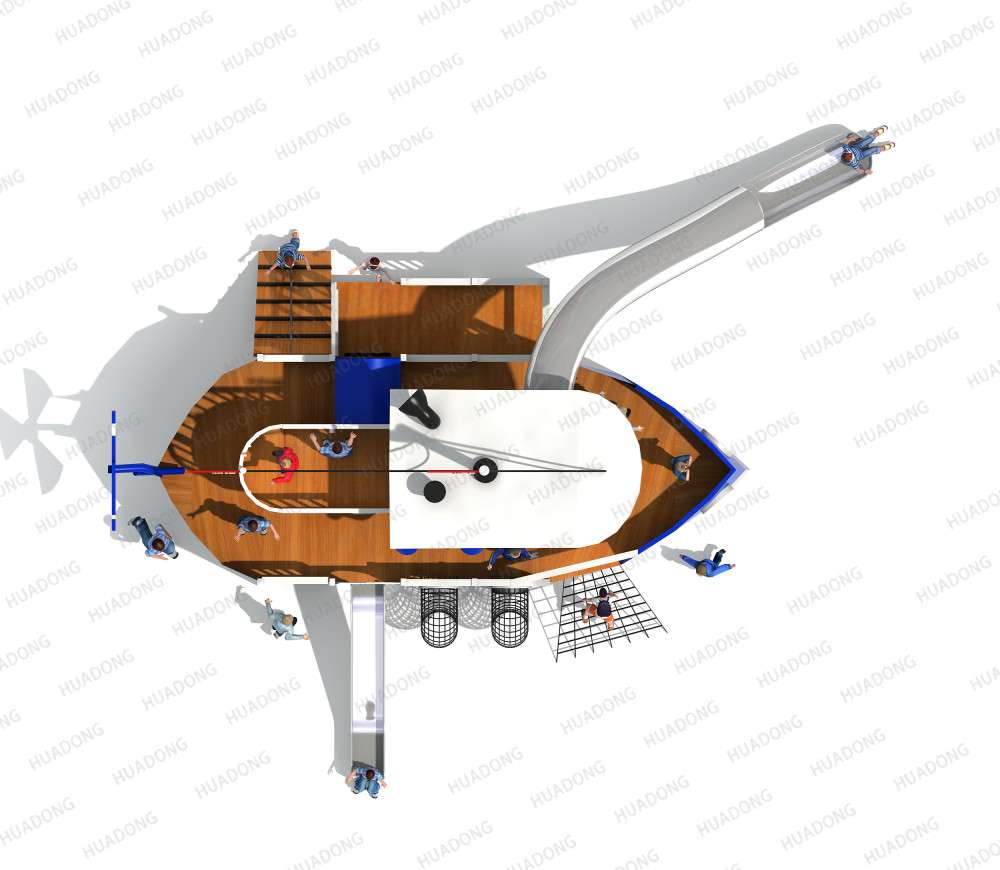 木制海盗船 HD-MHD009-儿童滑梯、滑梯组合